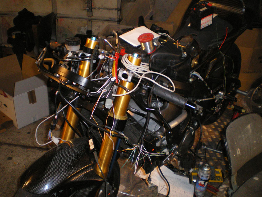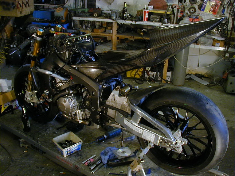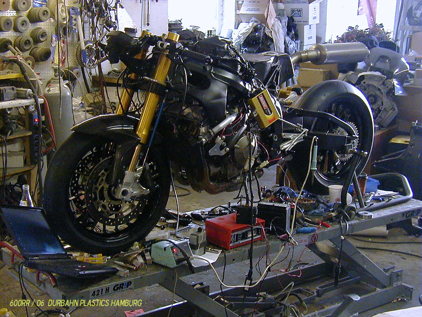 Status quo of the 600rr 1,5 days before we're moving to the track . The square Carbon box is a Fueltank .
